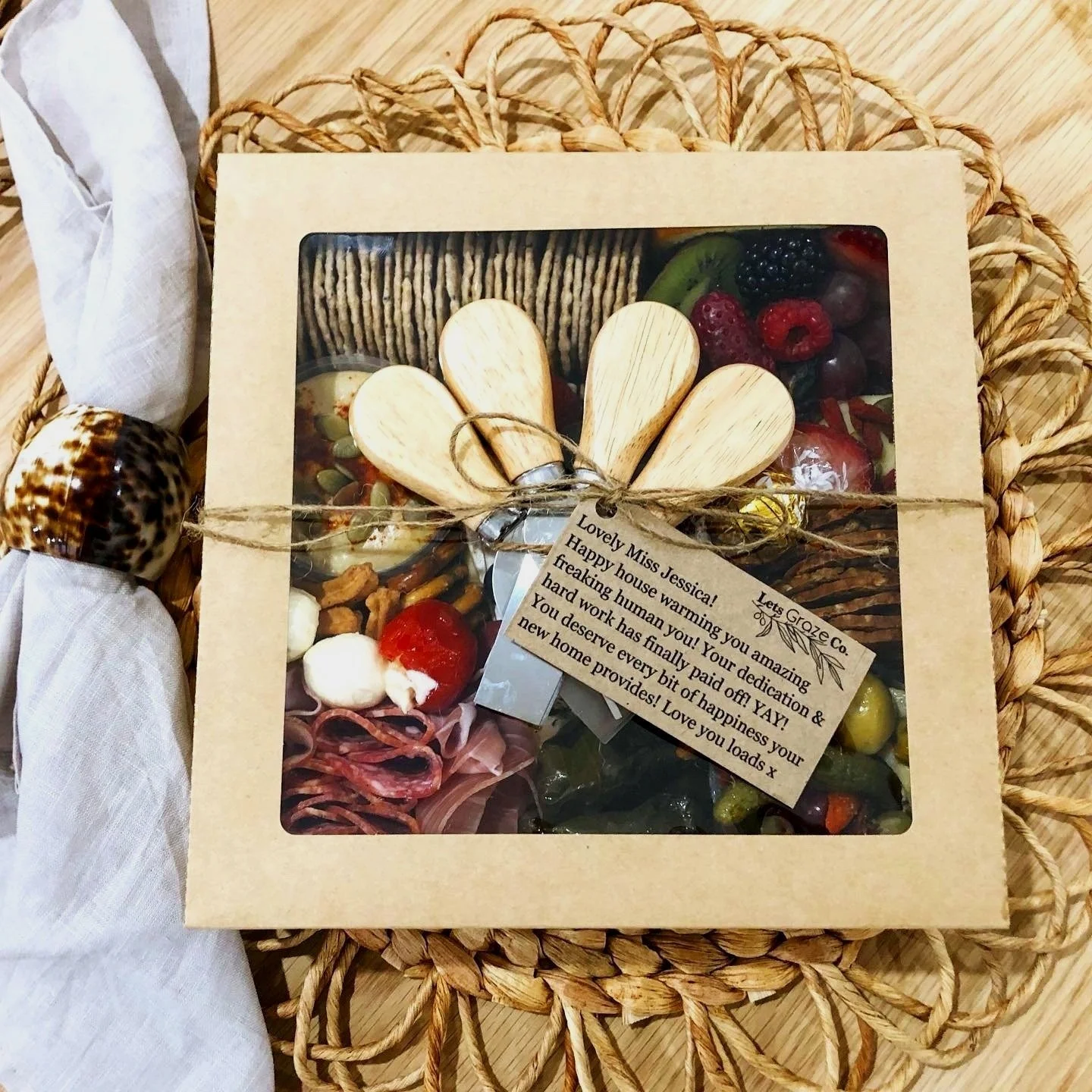 Looking to send a grazing box as a gift to a loved one? All boxes come with a custom message gift tag and the option to add on an additional something special: